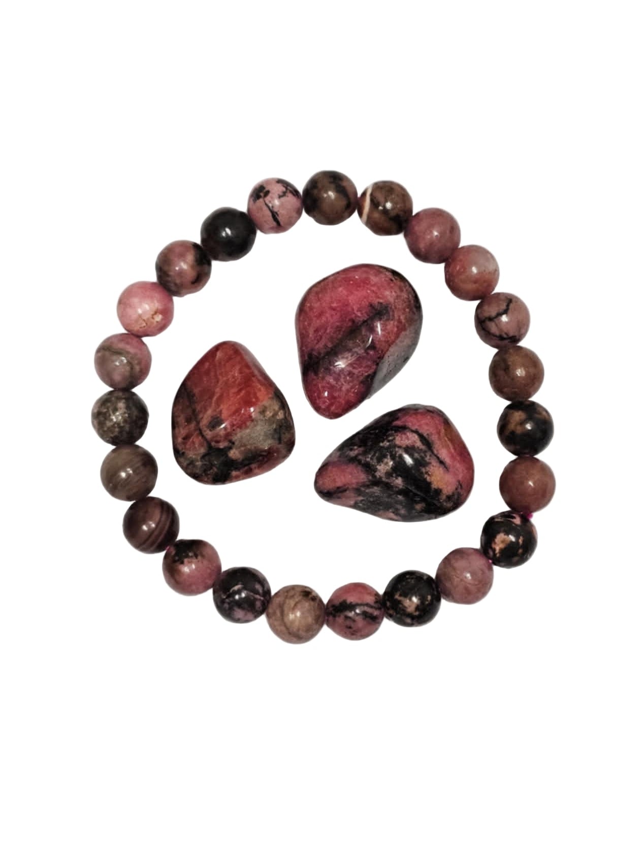 Rodonit är en vacker rosa sten med svarta ådringar. Den kallas ofta "hjärtats sten" och är känd för sin förmåga att hjälpa till att läka känslomässiga sår och främja självkärlek, medkänsla och emotionell balans. Rodonit hjälper dig att hantera stress och negativa känslor.
